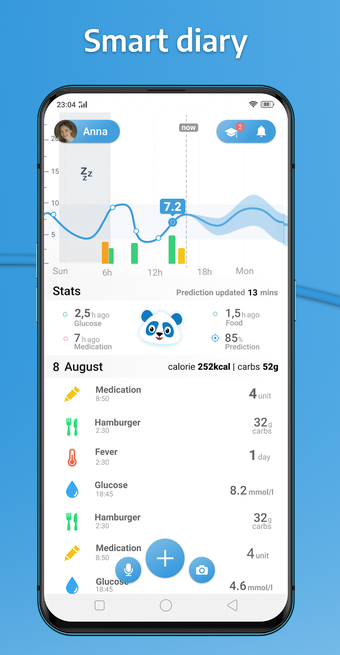 U kunt uw diabetes met uw stem registreren en de AI registreert uw maaltijd, de grootte en de tijd die u nodig had om het te eten.